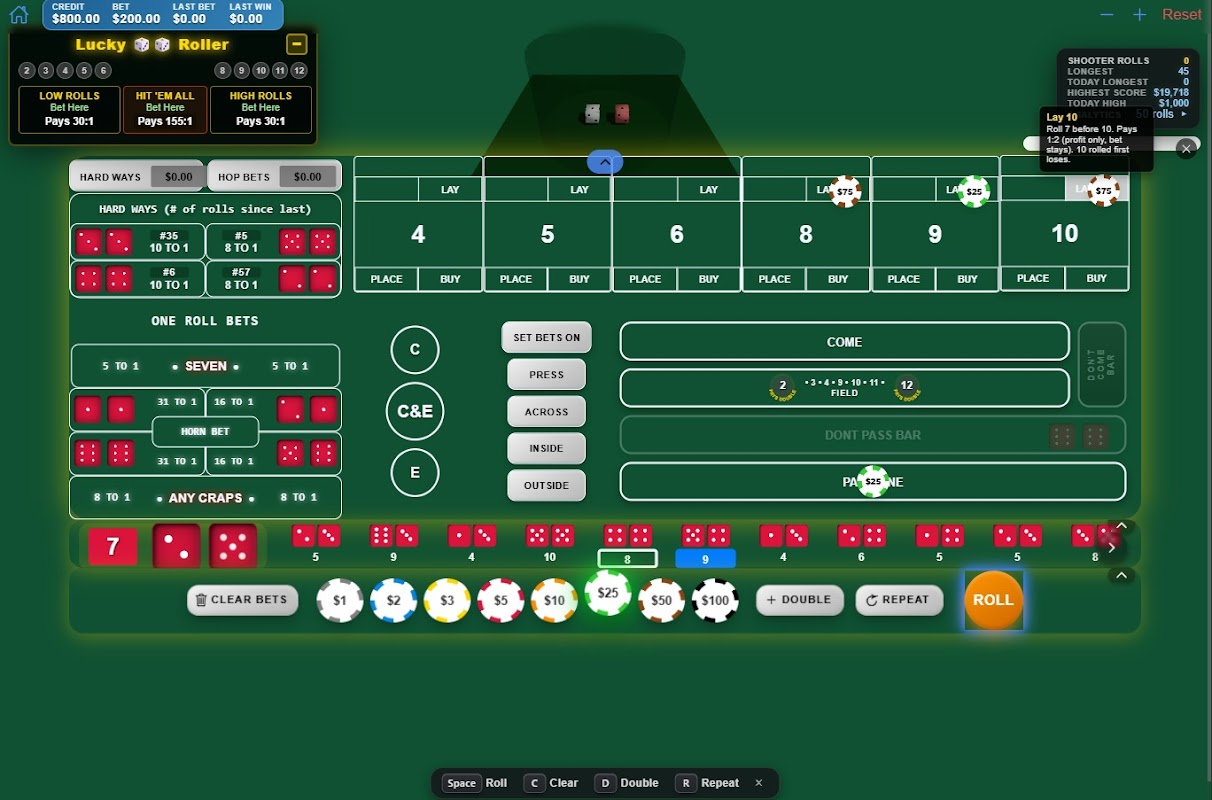 Main Bubble Craps secara percuma dalam talian – simulator craps terbaik yang diilhamkan oleh Bluff the Youtuber. Berlatih strategi craps gelembung dengan fizik dadu 3D yang realistik seperti yang anda lihat dalam video kasino Bluff. Kuasai sistem pertaruhan bubble craps, pelajari kemungkinan craps, dan pertajam kemahiran anda sebelum bermain di kasino sebenar. Menampilkan mod craps tradisional dan crapless craps dengan permainan bubble craps tulen.