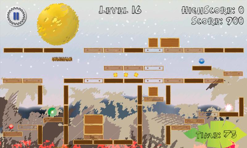 Tilt your device, jump, don’t fall down and reach the goal. You have 90 seconds to finish each level and achieve the best score.