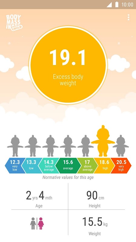Result is calculated according to general reading table created by World Health Organization (WHO). The BMI categories from the common table are interpreted by percentiles for a given age.