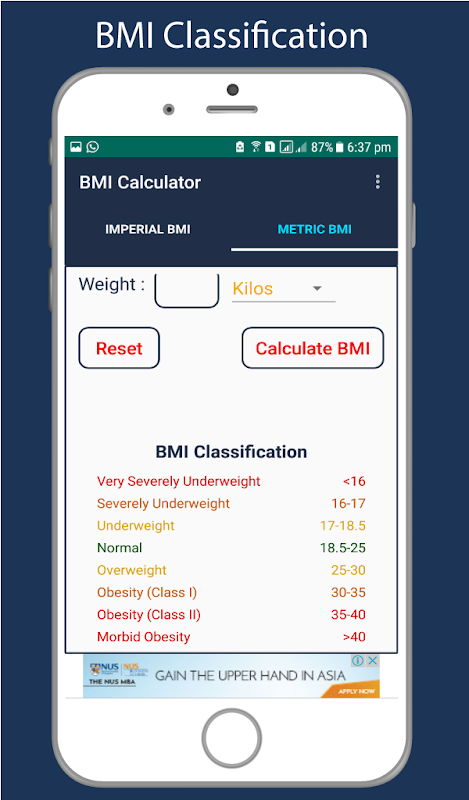 BMI Calculator (Body Mass Index) App direka untuk mengira Indeks Jisim Badan seseorang. BMI Calculator membantu anda memantau peratusan BMI dan lemak dalam badan. Aplikasi ini dengan cekap dan betul mengira Indeks tepat Body Mass (BMI) bahawa individu menggunakan maklumat tentang anda badan: jantina, umur, ketinggian dan berat badan.