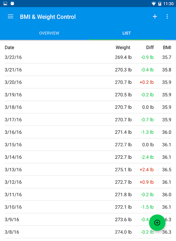 Mudah untuk menggunakan diari berat badan dan kalkulator BMI