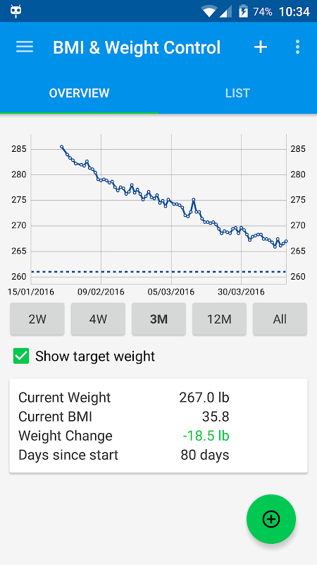 Dengan diari berat badan ini, anda boleh memantau berat badan anda dan mendapatkan analisis grafik yang baik. Jadi, anda boleh meningkatkan motivasi anda dan mencapai berat badan sasaran anda lebih cepat.