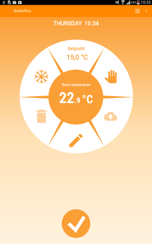 Aplikasi ini membolehkan anda menguruskan chronothermostat dari jauh. Adalah mungkin untuk menetapkan mod operasi manual atau automatik, musim panas atau musim sejuk, fungsi percutian, titik suhu suhu bilik dan jadual mingguan. Terima kasih kepada fungsi diagnosis diri yang mungkin diketahui pada bila-bila masa status chronothermostat dan dandang yang disambungkan kepadanya.