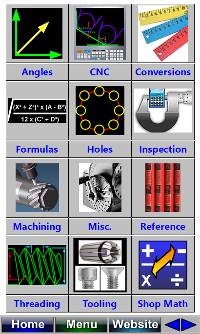 Web Machinist mempunyai banyak kalkulator untuk CNC Machinists, Programmer dan Inspektor QC. Kalkulator Circle Bolt, Kalkulator Corak Bolt Roda, Termasuk Kalkulator untuk Sudut, Aplikasi CNC, CNC Lathe Fanuc Canned Cycles termasuk G76 Kalkulator Kitar Alir, Mudah Lathe Cam CNC Peralatan Belanja Gendaran Kalkulator G-Kod, Kalkulator G-Code Chamfer, Penukaran Metrik, Kalkulator Kedalaman Countersink, Kalkulator Kedalaman Pusat Bor, Penukaran Umum, Penggerudian CNC, Kalkulator CNC Mill & Larik Hole Penggerudian dalam Lubang, Kalkulator Pengukur Dovetail, Simbol Rangka Tindakan, Kod G, Kod M, Formula Machining dan kalkulator, Spindle speed and formula rate feed and calculators , rumusan penyelesaian bulatan, corak lubang, lubang susun atur serpihan termasuk bulatan penuh dan pola bulatan separa, 3 Wire Threads Diameter Pitch Mengukur Kalkulator untuk Unified Threads, Thread Metric, Thread Threads dan Thread Trapezoidal Metrik, Alat CNC Lathe Perlengkapan pampasan Radius Hidung, Pemeriksaan QC , Pemesinan Manual, Kadar Pembuangan Logam, Pengilangan CNC, Rujukan, Axis Rotary, Speeds & F eeds, Imperial dan Module Spur Gear Dimensi Kalkulator, CNC Tapping, CNC Threading, Manual Calculhe Kalkulator, Thread Unified, Thread Metric, Thread Acme, Thread Thread Trapezoidal, Spur Gear, Modul Spur Gear, Imperial Spur Gears, Kalkulator Kawasan, Segitiga, Lingkaran Kalkulator, Peralatan Mesin Mill, Dimensi kolets, Kalkulator Pemotong Kunci, Kalkulator Trigonometri, Kalkulator Corak Lubang, Kalkulator Corak Bolt Roda, Kalkulator Kilang Manual, Peralatan & Perkakasan, Bar Sine dan Kalkulator Plate Sinyal Kompaun, Trigonometri & Geometri, Kalkulator Kalkulator Matematik, Kalkulator Kelajuan Spindle, Kalkulator Kelajuan CNC Tapping, Kalkulator Permukaan Kasar, Kalkulator Kelajuan Penggerudian, Kalkulator Kelajuan Mengetik, Kalkulator CNC Turning dan Miscellaneous. Ini adalah Program Mesti Mempunyai Machinists, Machinists CNC, Kedai Mesin, Inspektor QC, Operator Set-Up CNC, Programmer CNC.