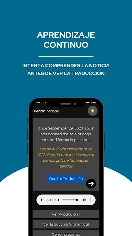 Temui cara baharu untuk belajar bahasa Inggeris dengan Bonencio, apl yang menggunakan berita umum untuk meningkatkan penguasaan bahasa anda. Dengan Bonencio, anda akan mengakses pelbagai jenis artikel semasa yang akan membolehkan anda mengembangkan perbendaharaan kata anda dan meningkatkan kefahaman mendengar anda dalam konteks sebenar. Aplikasi ini menawarkan definisi segera dan terjemahan perkataan yang tidak diketahui, serta audio yang berkaitan supaya anda boleh mempraktikkan kefahaman mendengar anda dengan berkesan. Anda akan dapat menjejak kemajuan anda untuk memerhati kemajuan anda dalam perbendaharaan kata dan struktur tatabahasa, dan mengambil bahagian dalam perbincangan dengan pengguna lain untuk menggalakkan pembelajaran kolaboratif. Bonencio ialah alat yang ideal untuk belajar bahasa Inggeris sambil memastikan anda mendapat maklumat terkini dengan berita dunia. Muat turun aplikasi dan mula mempertingkatkan bahasa Inggeris anda hari ini!