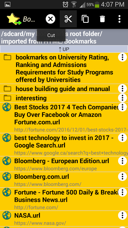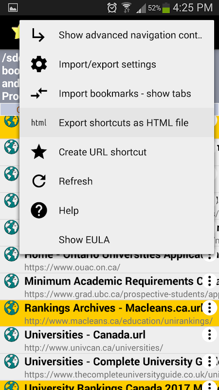 • accumulating, saving, storing web links on your Android device in form of Windows and/or Linux internet short-cut files (.url and/or .desktop files),