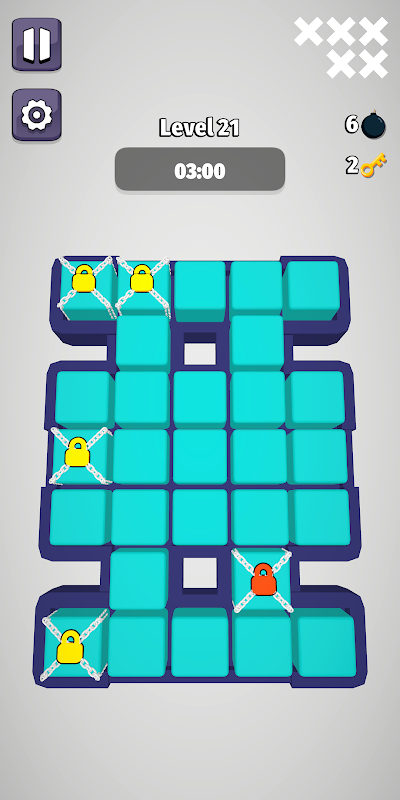 ✅ Sesetengah sel dikunci – cari kunci untuk membuka kuncinya dan melengkapkan tahap!