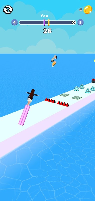 Cukup pegang untuk memanjangkan kaki dan lepaskan untuk meningkatkan. Menangi perlumbaan!