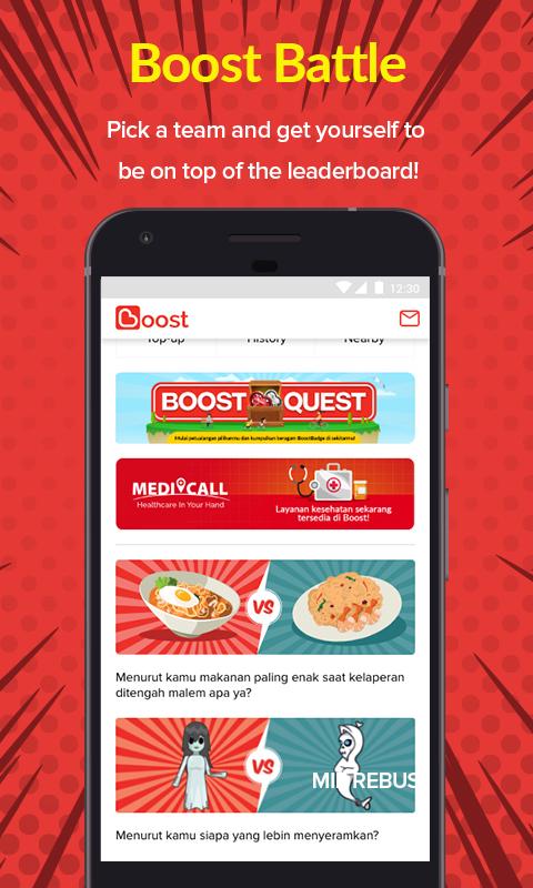 BoostPlay dirancang dalam format gamifikasi untuk menciptakan sebuah pengalaman interaksi / transaksi antara pengguna aplikasi dan para merchant Boost secara langsung maupun digital. Dapatkan penawaran menarik dari merchant Boost dan program reguler dimana pengguna dapat membeli produk impian dengan bersaing di dalam mini-game yang terdapat dalam aplikasi.