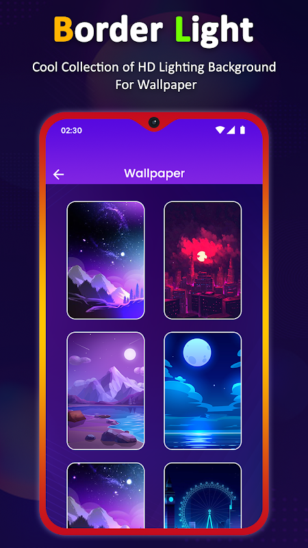 Kertas Dinding Langsung Cahaya Sempadan - Cahaya Tepi Ajaib juga membenarkan pengguna menetapkan kertas dinding langsung tepi video unik dengan kesan animasi. Aplikasi Skrin Cahaya Sempadan ini juga menyediakan pemberitahuan kesan cahaya tepi untuk membenarkan.