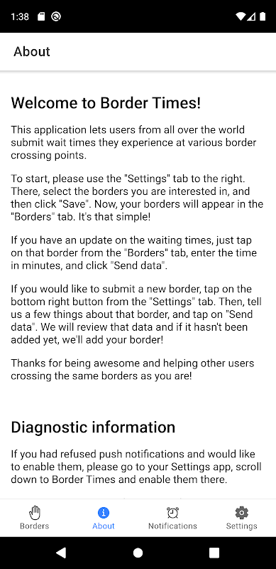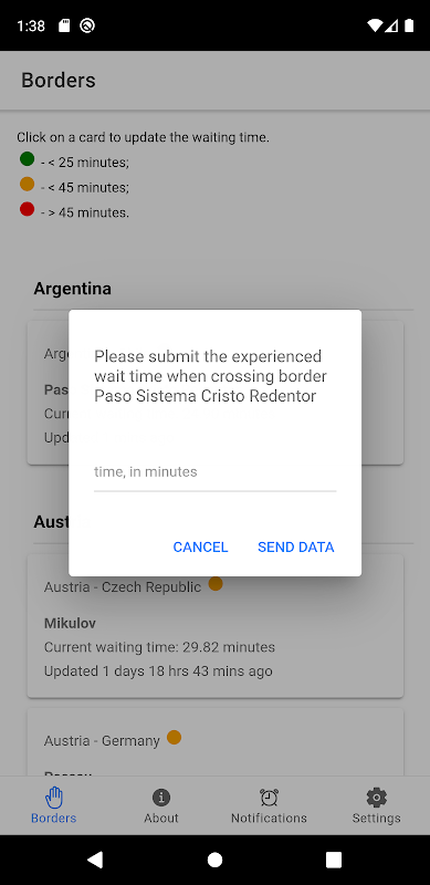 • jika data rasmi tidak tersedia, pengguna dari seluruh dunia boleh menyerahkan masa menunggu berpengalaman mereka dengan pantas di sempadan yang mereka lalui, memaklumkan pengguna yang ingin melintasi sempadan masa menunggu semasa.