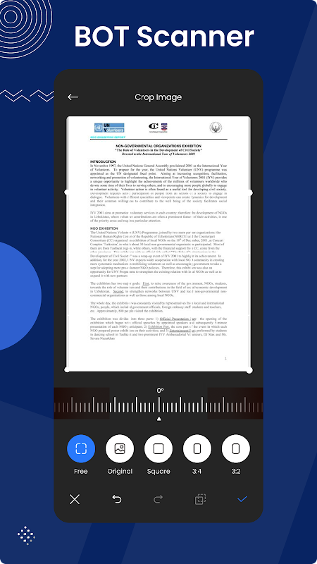 Apl Pengimbas BOT adalah yang terbaik untuk mengimbas dokumen dalam format PDF dan output PNG berkualiti tinggi. Gambar imbasan percuma, dokumen bertulis dan bahan grafik serta dokumen bercetak. Anda juga boleh menambah gambar dan foto untuk mengimbas daripada gulungan kamera oleh aplikasi Doc Scanner. Imbas dengan pantas sebarang jenis dokumen di pejabat atau rumah anda seperti resit, nota kelas, bil, halaman buku dan apa-apa sahaja dalam beberapa saat. Kini mengimbas dokumen tidak lagi sukar untuk anda hanya memasang dan mengimbas fail. Aplikasi pengimbas pdf adalah perlu untuk setiap orang jika anda seorang pelajar sekolah, pelajar kolej, pelajar universiti, ahli perniagaan atau mana-mana orang lain. Pengimbas BOT - Imbas Percuma PDF & Imej ke Teks ialah aplikasi yang sangat mudah dan terpantas untuk mengimbas foto dalam kualiti tinggi dan serta-merta menukar kepada format PDF, PNG dan JPEG supaya anda boleh berkongsi dokumen imbasan, nota, majalah, artikel dan sebarang jenis kertas yang anda mahukan. Aplikasi pengimbas percuma ini menjadikan kerja pejabat anda lebih bijak.