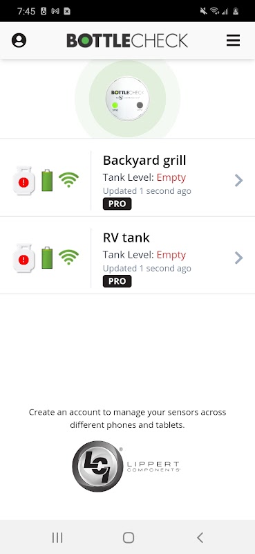Periksa tahap tangki propana anda menggunakan sensor bluetooth Lippert BottleCheck.