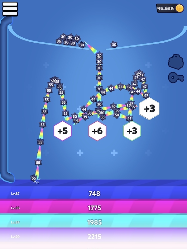 Semakin banyak anda melantunkan bola dari bampar, semakin kuat bola anda dan semakin mudah anda boleh bergerak ke hadapan dengan memecahkan blok.