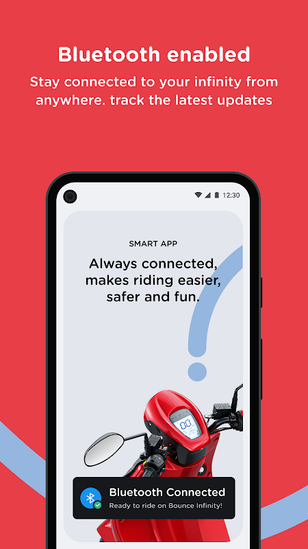 Bounce Infinity dan apl infiniti anda ialah kombo yang mematikan. Bersama-sama, mereka menawarkan pelbagai ciri pintar yang menjadikan menunggang elektrik sebagai pilihan yang menang. Kekal berhubung dengan Bounce Infinity E1 anda di mana sahaja anda berada. Dapatkan kemas kini masa nyata, jejak analitik skuter, cari stesen swap, tetapkan amaran geofence, teroka mod kenderaan, amaran antikecurian, penjejakan langsung, status pengecasan bateri dan banyak lagi.