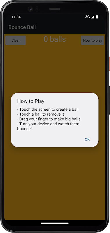 Start playing by creating your desired sizes balls, then make them bouncing by rotating your phone.