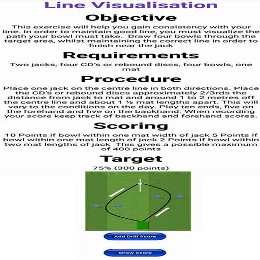 The Bowls Practice App have 12 practice drills for you to get your Lawn Bowls Game in tip top shape.