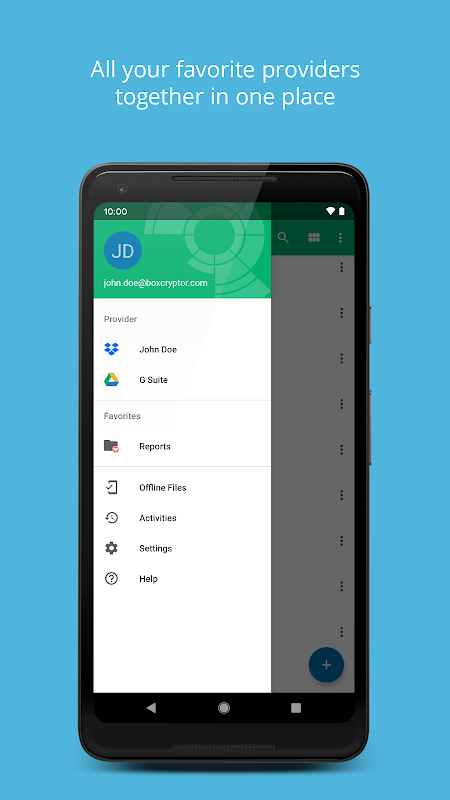 Dengan Boxcryptor, anda dapat menyulitkan fail anda sebelum memuat naiknya ke Dropbox, Google Drive, Microsoft OneDrive dan banyak penyedia lain tanpa mengorbankan keselamatan, privasi, atau keselesaan. Sulitkan fail anda secara tempatan dan aksesnya melalui telefon pintar atau tablet anda - di mana sahaja dan bila-bila masa. Penyedia awan anda hanya menerima fail yang dienkripsi dan anda mengawal data anda!