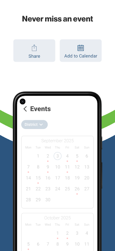 Bahagian acara menunjukkan senarai acara di seluruh daerah. Pengguna boleh menambahkan acara pada kalendar mereka untuk berkongsi acara dengan rakan dan keluarga dengan satu ketikan.