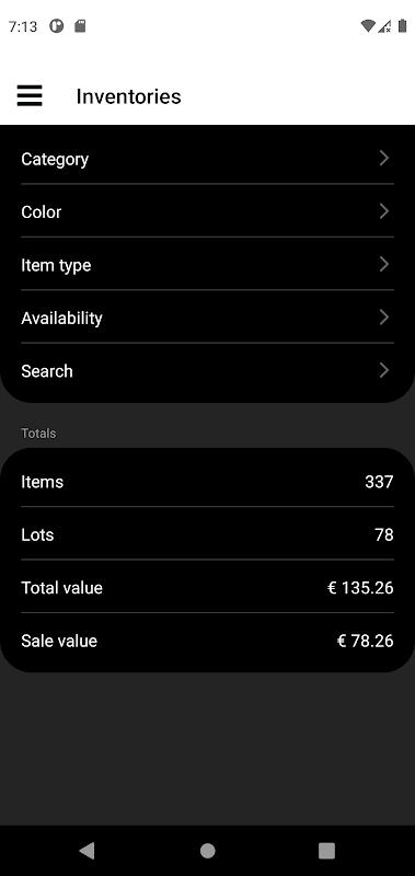 Muatkan inventori lengkap kedai anda, lihat mengikut kategori, penerangan, warna, jenis dan ketersediaan serta kemas kini butiran dengan mudah, tetapkan harga dan diskaun, edit harga berperingkat, hantar item ke Bilik Stok, kongsi pautan ke item inventori, gunakan fungsi carian untuk mengira bahagian keluar bermula daripada kod set.
