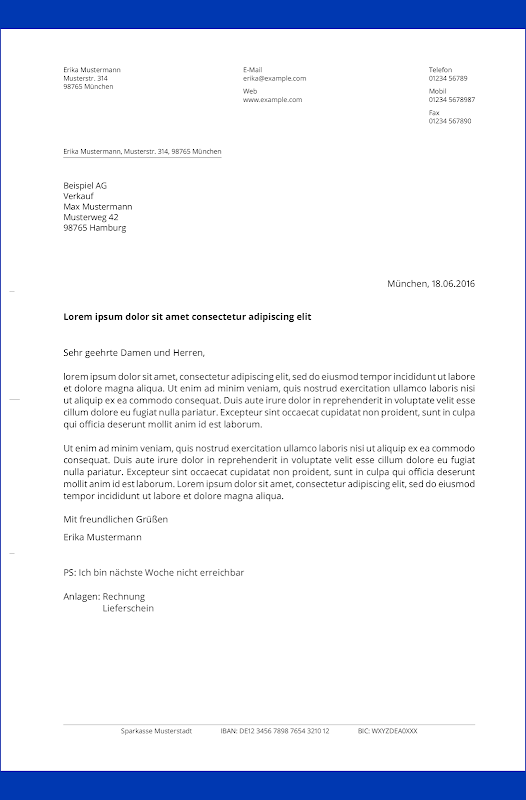 Cuma mulakan dan dalam beberapa minit hingga surat selesai. Dengan susun atur automatik dan pemformatan yang betul anda hanya perlu mendedikasikan diri anda ke teks anda. Jadi anda meyakinkan dengan setiap surat!