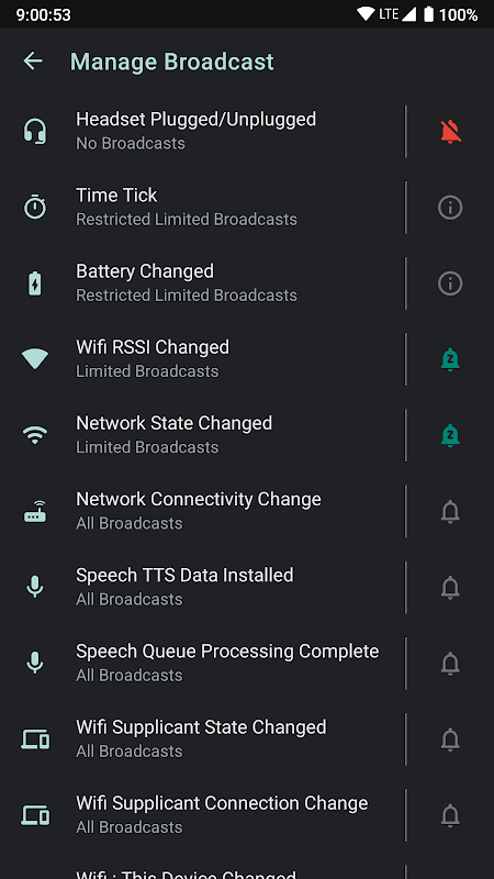 Urus: Anda juga boleh menguruskan keutamaan broadcats ini (Semua / Terbatas / Tiada)