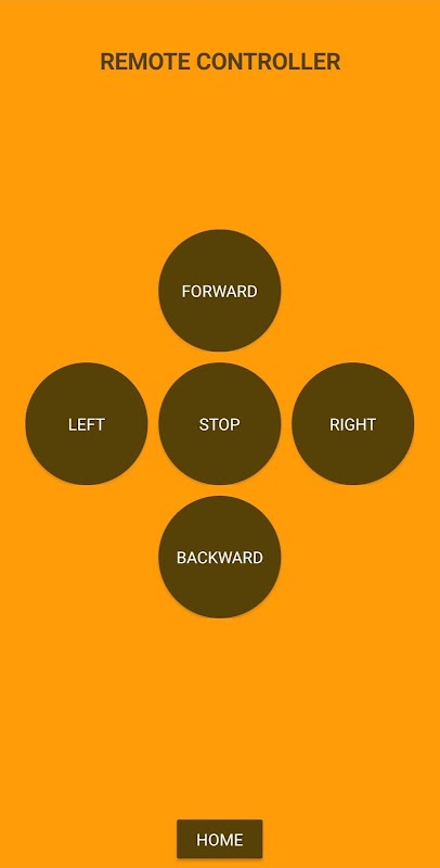 Pengawal Jauh mempunyai 5 butang masing-masing untuk Forward, Backward, Kiri, Kanan dan Berhenti. Apabila butang ditekan, aplikasi menghantar watak khusus yang sepadan dengan butang tersebut menggunakan protokol komunikasi bersiri bluetooth (UART).