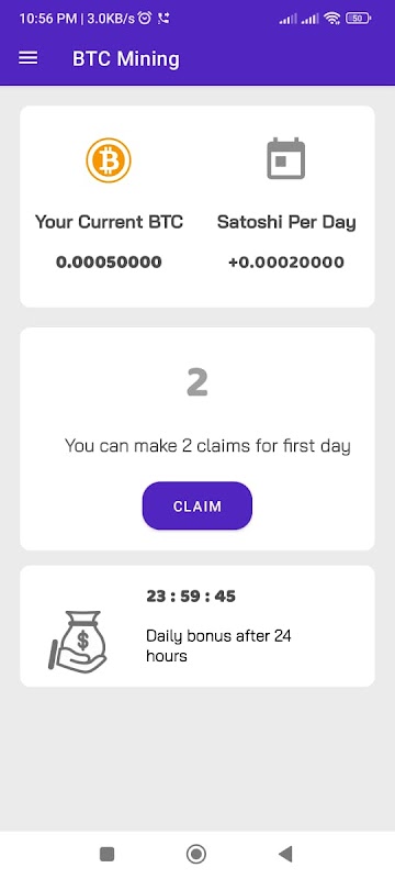 BTC Mining ialah cara yang berpatutan dan mudah untuk mendapatkan wang secara pasif menggunakan peranti mudah alih anda: hanya pasang apl dan mula menjana pendapatan pada bila-bila masa, secara percuma dan tanpa pelaburan. Anda boleh memperoleh Bitcoin (BTC) dengan mudah hanya dengan menggunakan aplikasi ini setiap hari. Apl ini boleh memberi anda jumlah wang yang baik untuk setiap bulan. Anda boleh memperoleh Bitcoin (BTC) dengan hanya melakukan beberapa tugas mudah. Anda boleh melombong (BTC) setiap hari. dan anda juga boleh memperoleh sedikit Bitcoin (BTC) tambahan untuk melakukan beberapa tugas tambahan. Tugas tambahan itu sangat mudah untuk semua orang. Juga aplikasi ini sangat mudah digunakan. Semua orang boleh menggunakan aplikasi ini dengan mudah. Apl ini tidak memanaskan telefon anda dan ia juga tidak menjejaskan mana-mana peranti. Anda boleh menggunakan apl ini walaupun menggunakan telefon pintar android biasa dan memperoleh jumlah Bitcoin (BTC) yang baik setiap bulan. Apl ini sangat selamat untuk perlombongan. Oleh itu, bersedialah untuk mendapatkan sedikit Bitcoin (BTC) menggunakan telefon pintar anda.