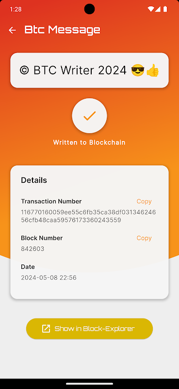 Apl ini ialah alat, yang menggunakan OP_RETURN untuk menulis sehingga 40 bait teks UTF8 (lebih kurang 40 aksara) ke dalam blockchain bitcoin. Sejak itu, mesej anda boleh dilihat secara umum selama-lamanya dengan mana-mana blockexplorer dan menjadi sebahagian daripada sejarah bitcoin.