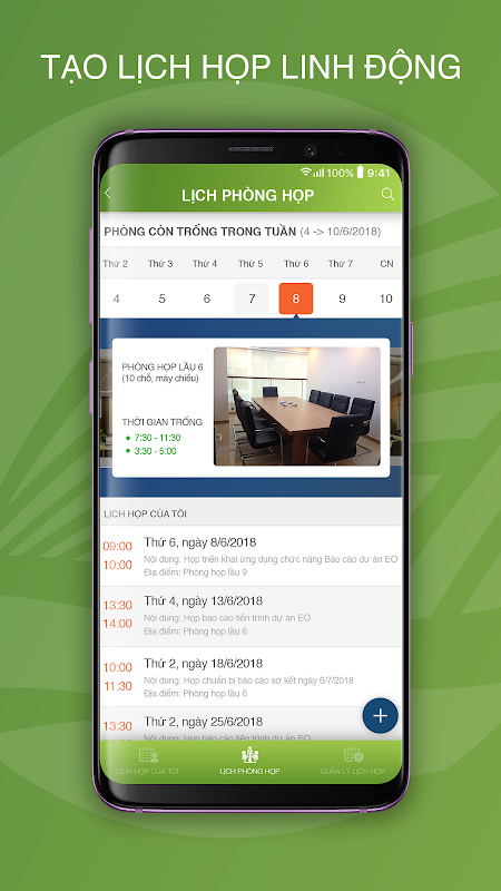 - Lịch làm việc: quản lý các công việc cá nhân, cập nhật lịch, tổng hợp lịch hằng ngày, tạo ghi chú. Tra cứu lịch làm việc của lãnh đạo và các nhân viên khác.