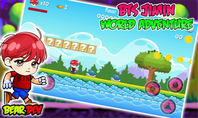 BTS Jimin World Adventure is a classic platform, arcade run game with a journey of through the jungle world that brings your childhood back. This classic arcade game will make you addict to like the world and the jungle world.