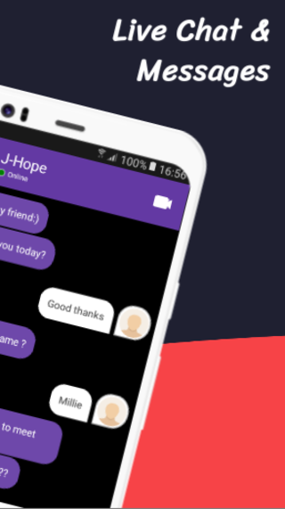 * Start Live chat like Messenger with one of seven members of BTS: Jin, J-Hope, Jimin, Jungkook, RM, V, Suga