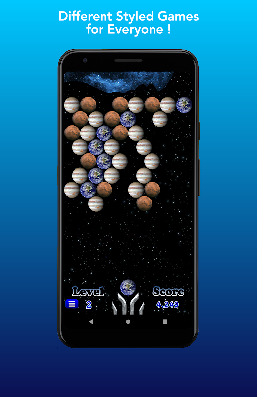 There are 100 unique levels of bubbles to pop, that's per game ! 900 levels in all ! Levels contain from as few a 3 different types of bubbles, all the way up to a maximum of different 8 types.