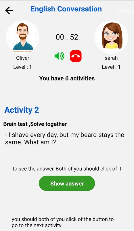 Rakan kongsi bercakap boleh ditemui dengan mudah dalam apl latihan Berbahasa Inggeris ini.