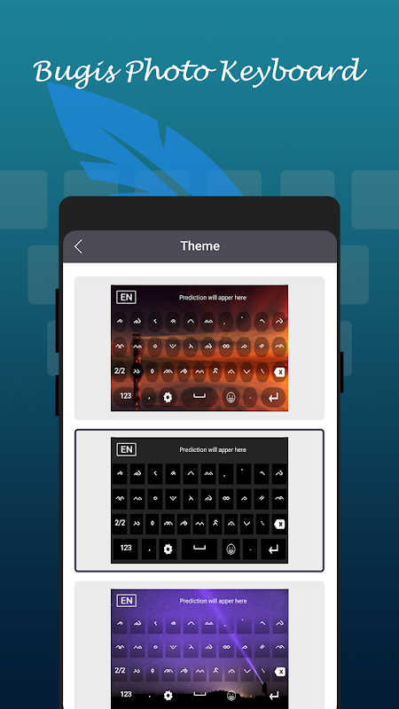 With Bugis Keyboard you can write all Bugis Alphabets, letters and words. Bugis keyboard is the easiest keyboard to write in Bugis language, it is providing you reading, writing and sharing text in Bugis language.