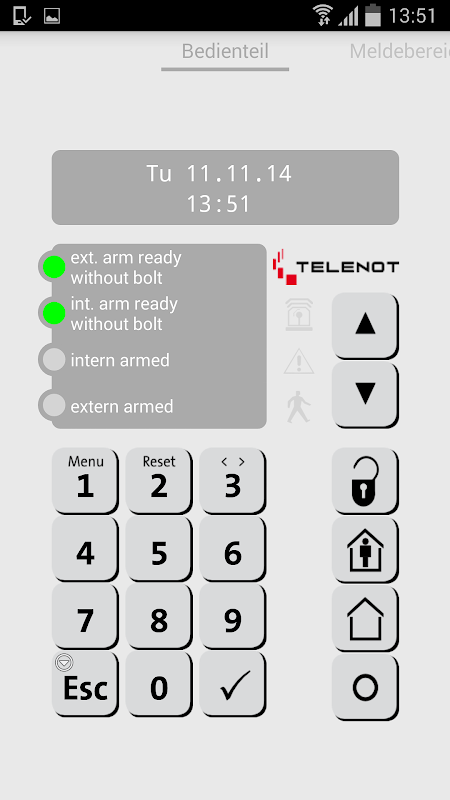 Die Bedienung der Alarmanlagen-App entspricht einem Bedienteil BT 800.