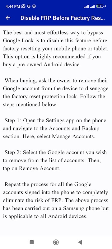 Aplikasi ini perlu memintas FRP Panduan Google dan Kaedah Mudah. Saya rasa aplikasi ini anda perlukan. Kami harap anda mendapati aplikasi itu Berguna. Jika Anda Suka Apl ini, Beri Lima Bintang.