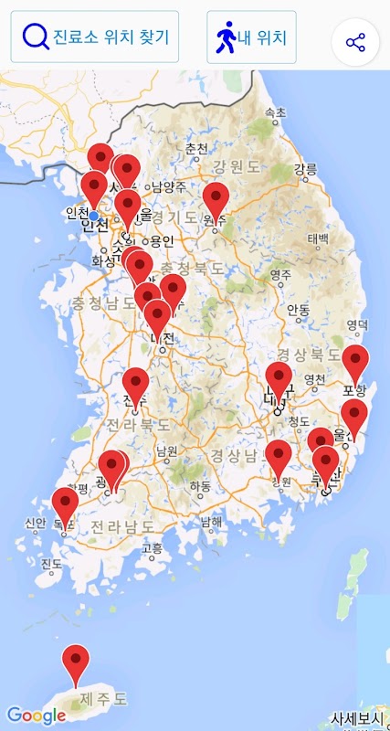 지역 별로 위치한 예방접종센터 위치를 구글 지도를 통해 쉽게 찾아가세요!