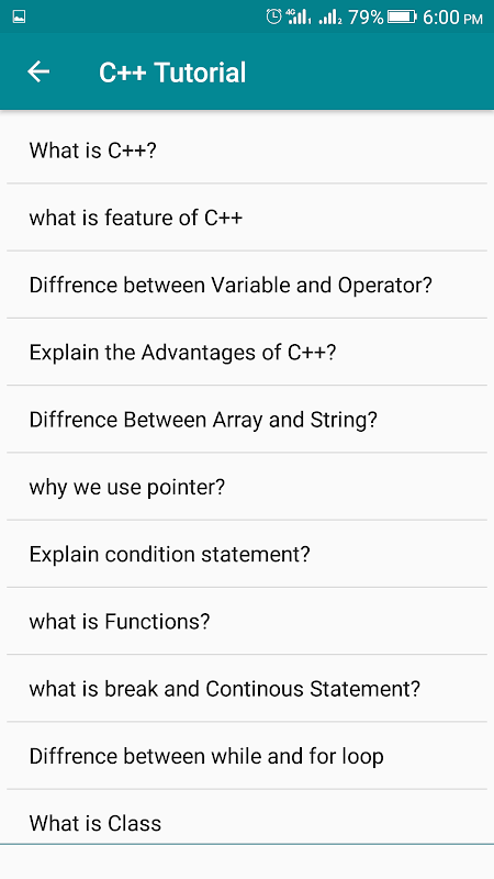 phone. c++ programming app contains many basic c++ programs with output, Important Exam Questions of object oriented programming free, Interview Questions programming books free and