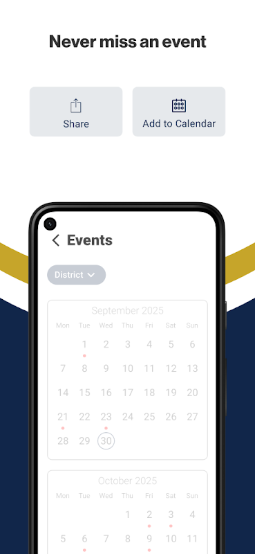 Bahagian acara menunjukkan senarai acara di seluruh daerah. Pengguna boleh menambahkan acara pada kalendar mereka dan berkongsi acara dengan rakan dan keluarga dengan satu ketikan.
