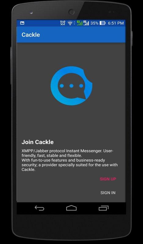 Cackle is an xmpp/jabber messaging app. it is a communication app that allows you to chat as free with world. Jabber/XMPP client with multi-account support, clean and simple interface. One needs to register once with an any XMPP service or you can register with our app