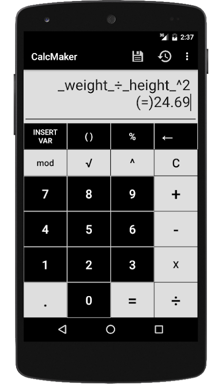 Improved history display: for calculations with variables, the history is now filtered and there's an option in settings to show the variable's value in the history.