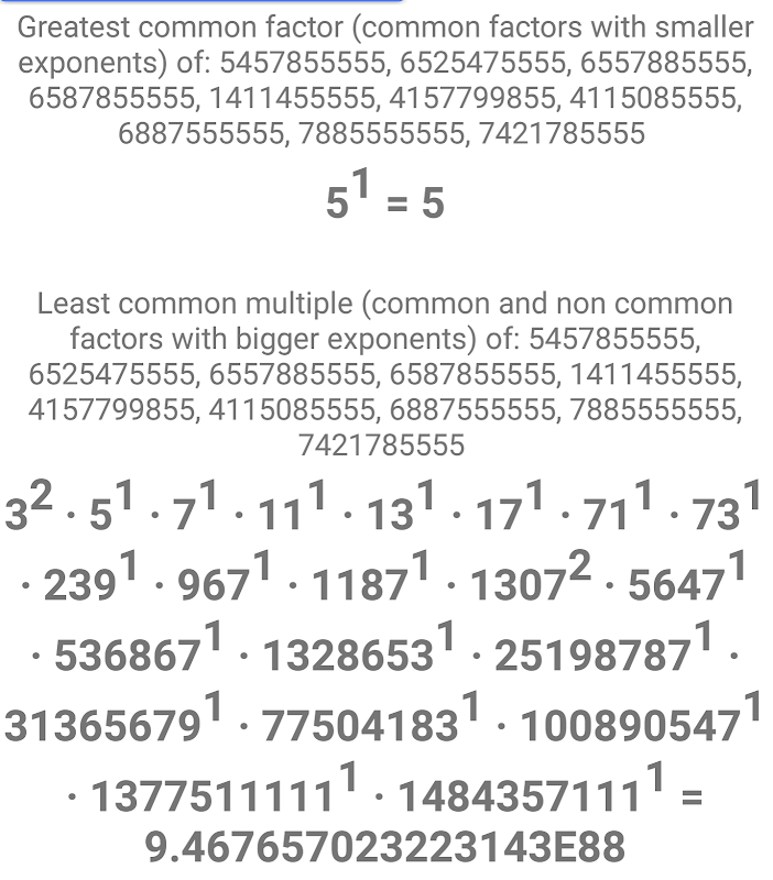 The app is also very useful to get prime factorization of several numbers at the same time.