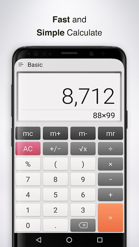 Calculator Pro let your phone be a professional calculator with BASIC, SCIENTIFIC and EQUATION SOLVER Mode.