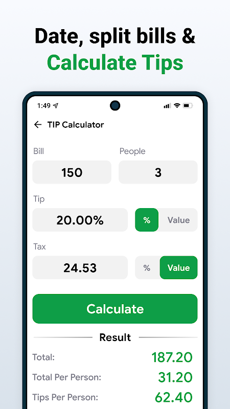 • Calculate percentage increase or decrease easily.