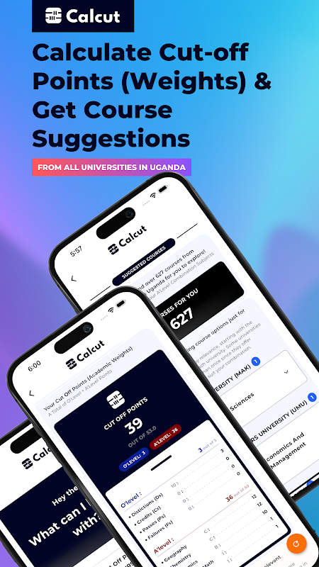 Pendekatan Memenangi Anugerah, Intuitif, Lancar dan Cekap yang dipercayai oleh Ribuan Pelajar untuk Mengira Mata Potongan mereka. Aplikasi Calcut membolehkan mana-mana Pelajar Uganda yang merancang untuk menyertai Universiti (Kampus) mengira mata Cut-off mereka (Berat Akademik) [untuk kursus yang ingin mereka jalani semasa di Universiti] dengan mudah dalam beberapa saat.