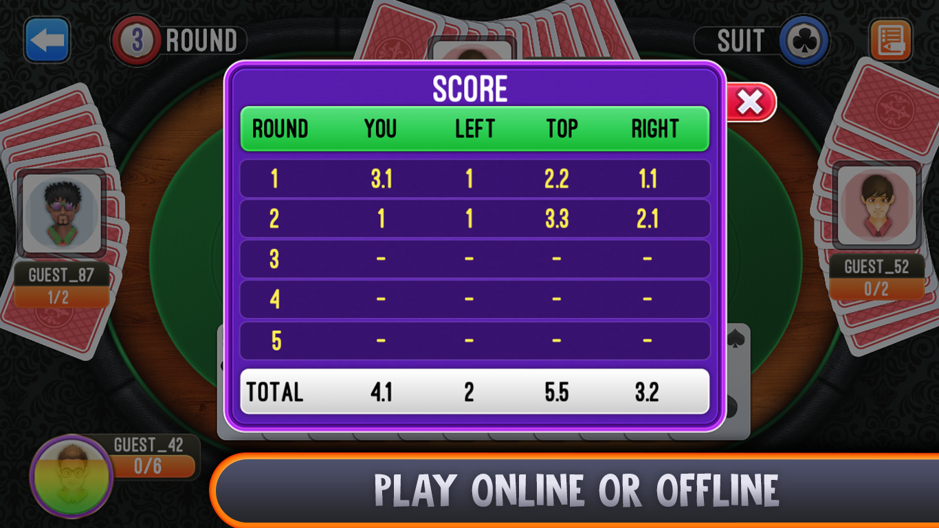 Call Break kini mempunyai mod berbilang pemain dalam talian dan anda boleh bersenang-senang berjam-jam dengan rakan dan keluarga.