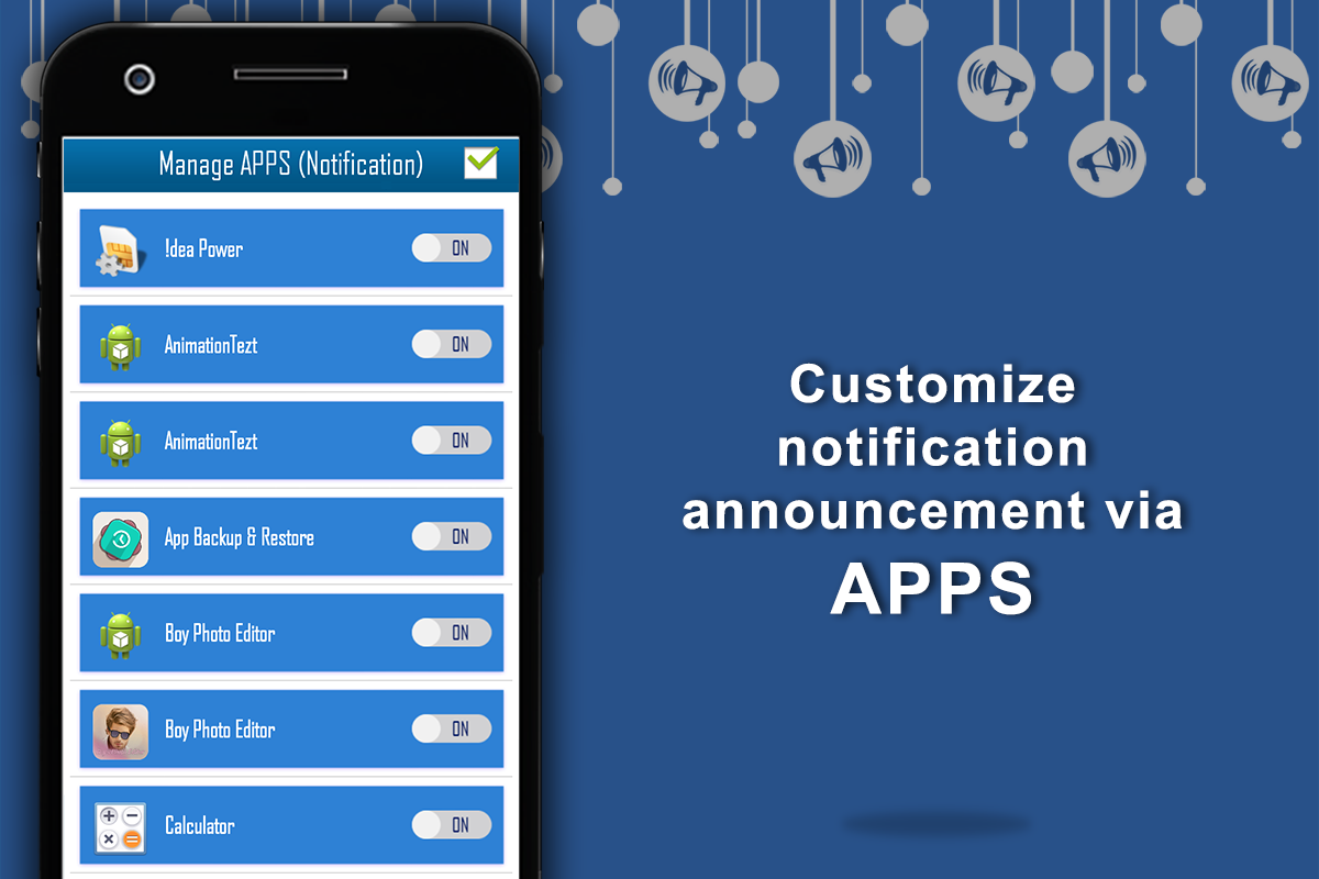 - You can choose which Application Notifications you would like to get Notified. Like Facebook or turn off the announcements for annoying Apps
