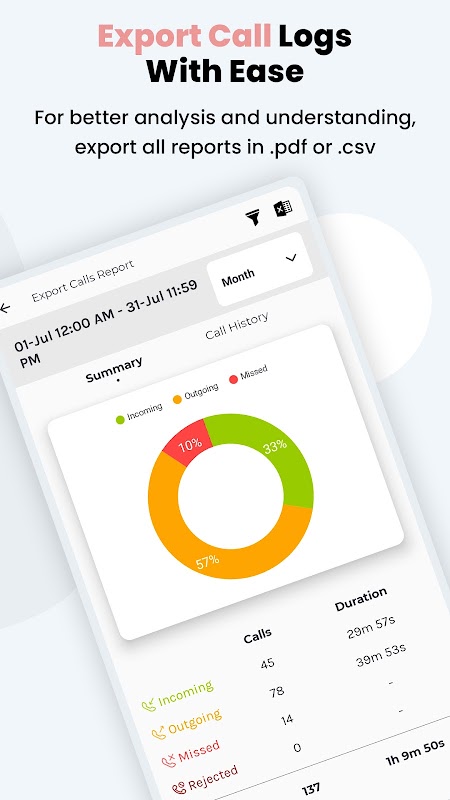 Callyzer membolehkan eksport data log panggilan ke format Microsoft Excel (XLS) atau CSV. Ini terbukti sebagai alat yang berharga untuk perniagaan kecil dan eksekutif jualan, membolehkan mereka menganalisis log panggilan di luar talian.