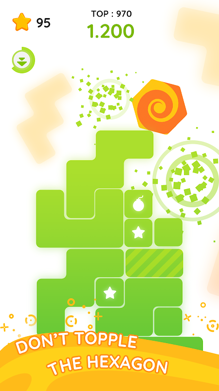 Calmfall is a fun and relaxing time killer! The aim of the game is to get the hexagon down the tower block to earn points. You do this by tapping the bricks to make them disappear bringing the hexagon down into the space cleared underneath. But keep in mind that if the removal of the blocks topples the tower or the hexagon gains momentum and rolls off the screen, then it’s game over and you have to start all over again.